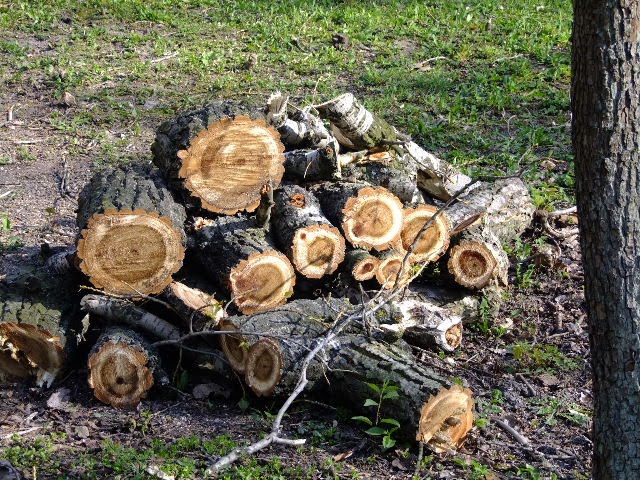 No może nie tyle owoc pracy drwali, lecz pracowników zakładu zieleni, którzy dbają o drzewostan w parku - Fort Bema.